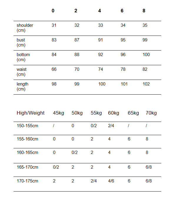 SIZE CHART