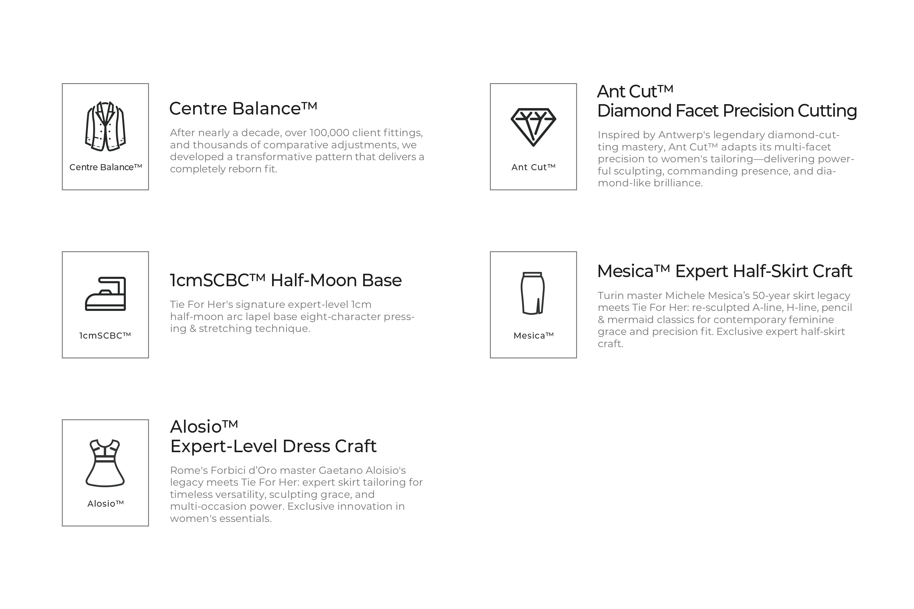 Tie For Her unique diamond section cutting process - Ant Cut™. Adhering to the proud Antwerp diamond cutting technology of the world's most influential diamond cutting center, it combines the requirements of the world's elite women for suits and dresses with both shaping effect and a sense of strength to create a unique diamond cutting technology that belongs to Tie for Her.