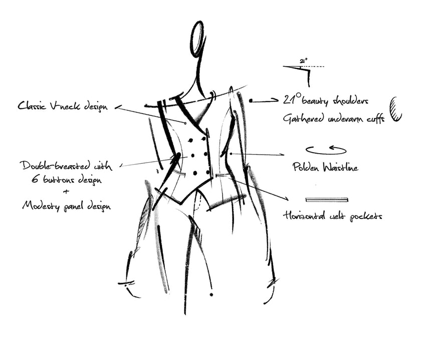 Tie For Her encapsulates women's professionalism, composure, and authenticity into the Teresa series vest, with a sleek cut falling from the shoulders to the waist, embodying a sharp and refined spirit. The Teresa series vest is named after Nobel Peace Prize laureate Mother Teresa. Mother Teresa dedicated her life to alleviating poverty and suffering, and she was awarded the Nobel Peace Prize in 1979. The double-breasted six-button front design creates a more defined waistline, refining the silhouette with a confident posture, allowing resilience to flourish from within.