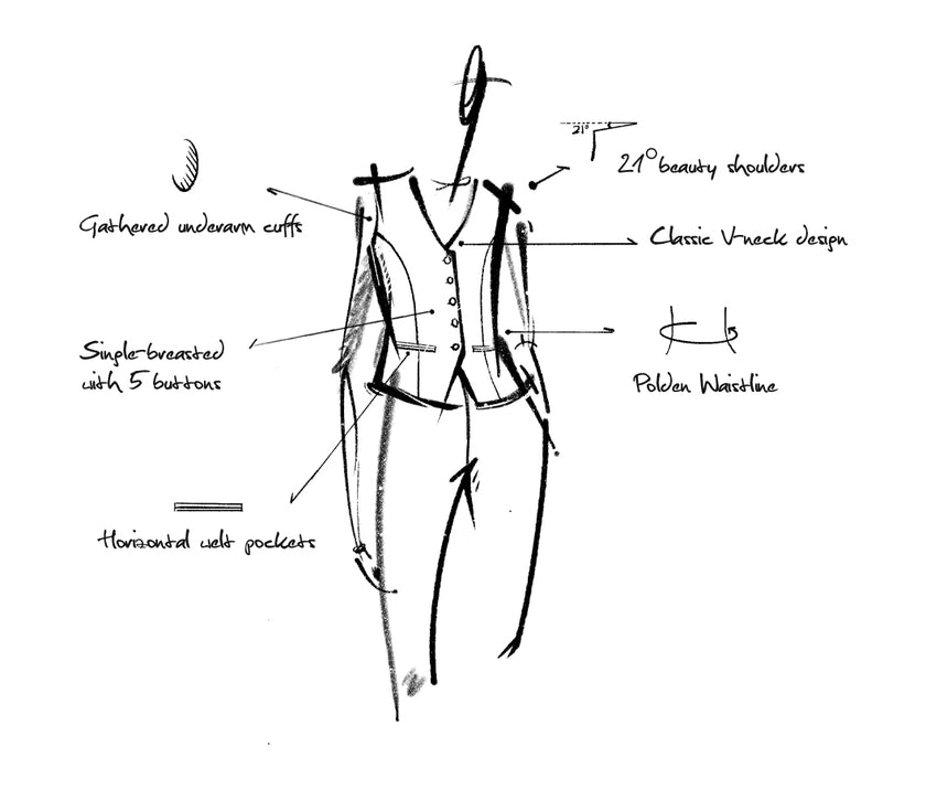 The Tie For Her Rosa series suit vest incorporates the brand's signature tailored cut into the inner layer vest, fitting snugly around the waist with a strong sense of structure. Featuring a simpler single-breasted button design and employing lightweight yet intricate cutting techniques, it embodies a minimalist and elegant aesthetic. The Rosa series vest is named after Madame Chiang Kai-shek's English name. She was the first internationally recognized Chinese woman, known for her grandeur, elegance, and extraordinary charisma. French writer Romain Rolland described her as "the outward appearance is a beautiful flower fragrant all over the world, while the inner soul is a lion striving to break free from the net.